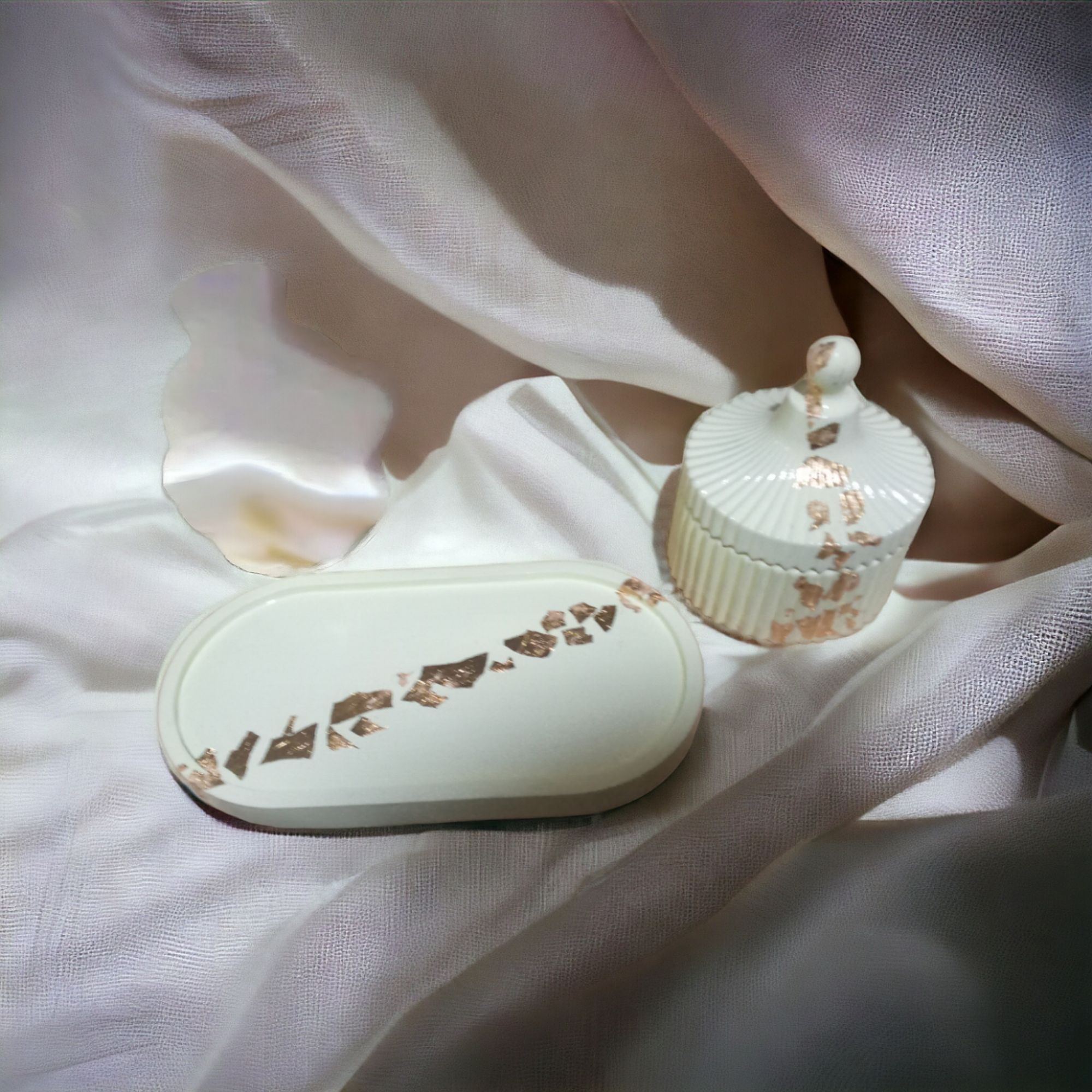 Add elegance to your decor with this set of 3 decorative jewelry boxes and trays. Crafted from premium ceramic with gold detailing, these pieces are perfect for organizing jewelry or enhancing your home’s aesthetic. Ideal for dressers, shelves, and tabletops.
